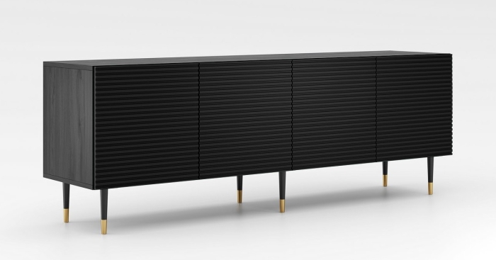 Každá skříňka je ideální pro organizaci různých předmětů, od multimediálního vybavení po knihy, hry nebo dekorace, což umožňuje udržet pořádek a elegantní vzhled obývacího pokoje. Šířka komody umožňuje pohodlné umístění na ní velkého televizoru, čímž se stává centrem zábavy v domě.