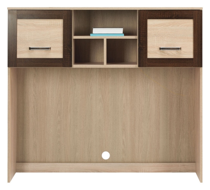 Rozšiřte své obývací pokojové uspořádání s nástavcem na TV skříňku 'Boss BS-03'. Tato praktická a stylová doplňková jednotka je ideálním řešením pro zvýšení úložného prostoru a přidání nádechu stylu do vašeho interiéru. Nástavec je vybaven dvěma uzamykatelnými skříňkami, které jsou ideální pro ukládání různých předmětů, od příslušenství k AV zařízením po malé dekorační prvky, což zajišťuje pořádek a estetický vzhled. Navíc tři malé police nabízejí perfektní místo pro vystavení oblíbených gadgetů nebo rámečků s fotografiemi, což vytváří osobní a útulný kout ve vašem obývacím pokoji. Stejně jako ostatní prvky kolekce, nástavec si zachovává konzistentní estetiku s autentickými barvami dubu sonoma a čokoládového dubu, což zaručuje harmonii a eleganci v každém interiéru.
