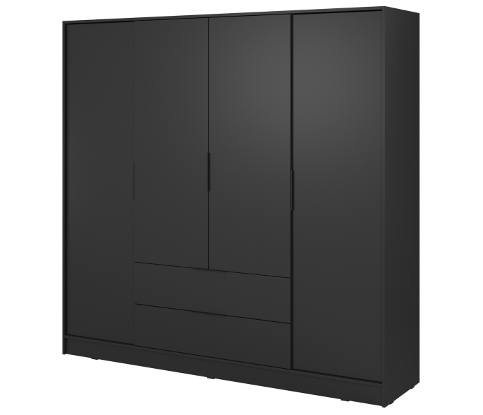 Szafa Kelly 4D dostępna jest w czterech modnych kolorach: eleganckim kaszmirze, ponadczasowej czerni, rustykalnym artisan oraz uniwersalnym graficie. Jej gładkie fronty bez przeszkleń i luster nadają całości nowoczesny, minimalistyczny wygląd, który podkreślają subtelne, czarne uchwyty – proste i dyskretne, idealnie komponujące się z całością. Ten model to esencja stylu nowoczesnego, który świetnie wpasuje się zarówno w klasyczne, jak i bardziej nowoczesne wnętrza.